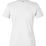 - UA woven label centered on left sleeve hem and UA heat seal center back neck